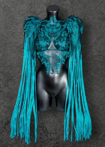 TEMPTATION - Teal Lace Harness & Fringed Epaulettes