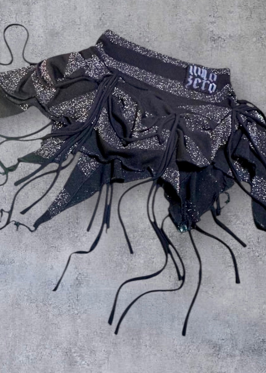 DARIA - *Ready to Ship* Black & Silver Lurex Hitch Hanky Skirt UK 6/US 2