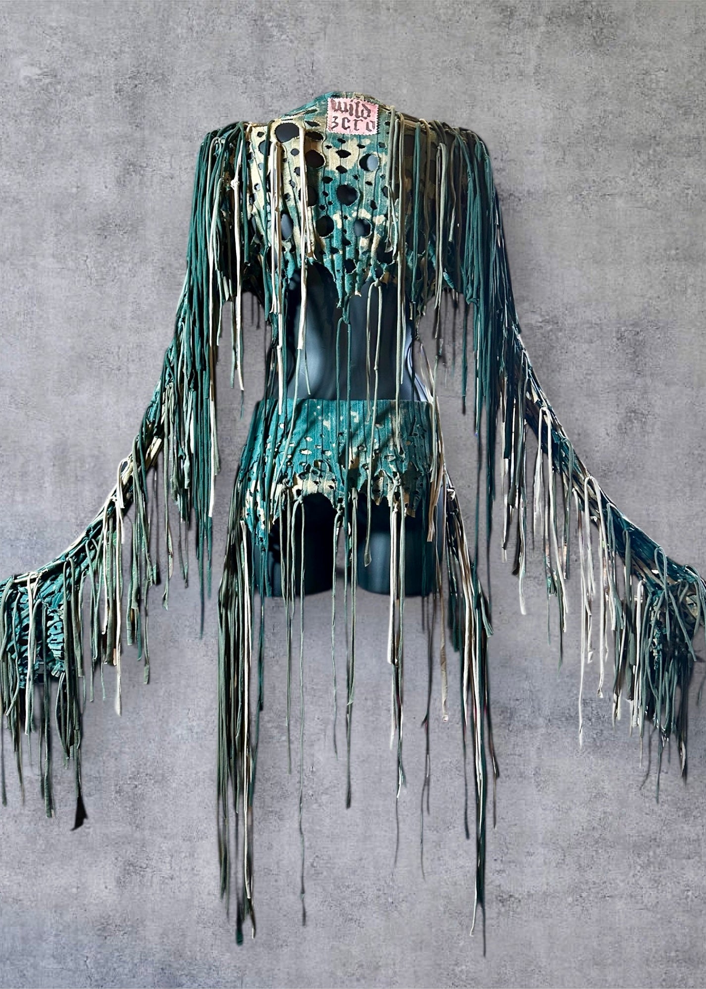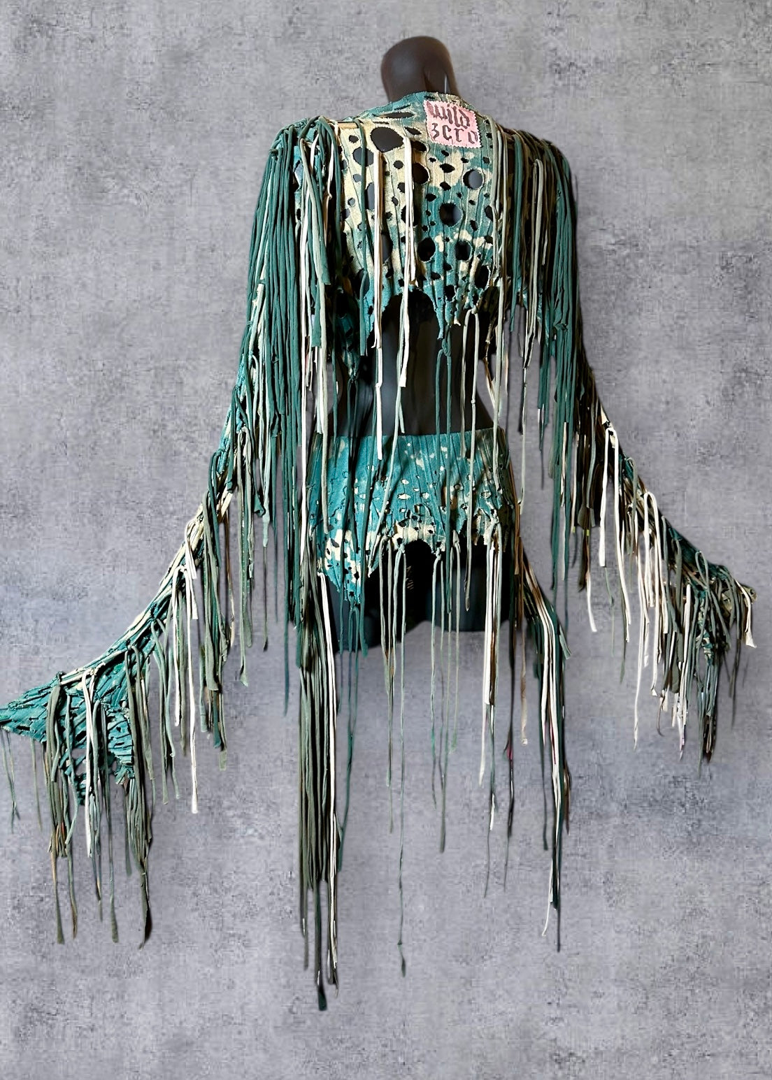 Distressed, deconstructed & reworked. Edges left raw for a punk couture vibe.
