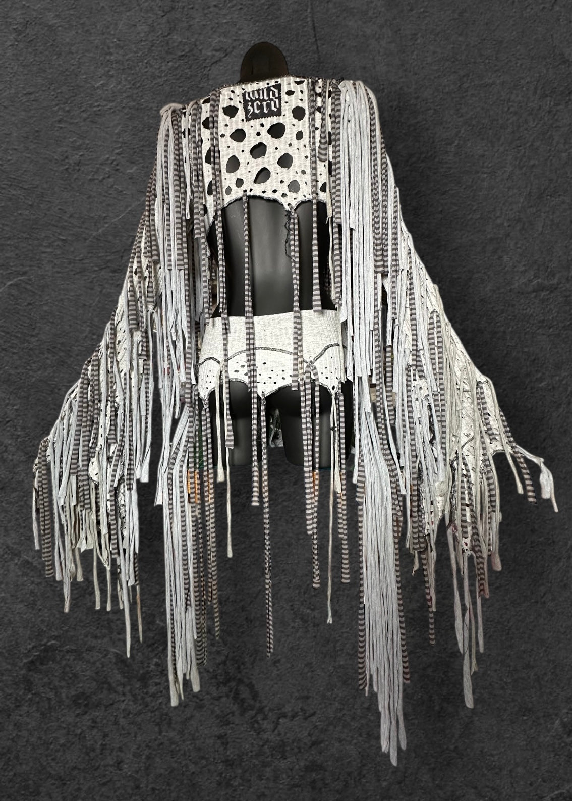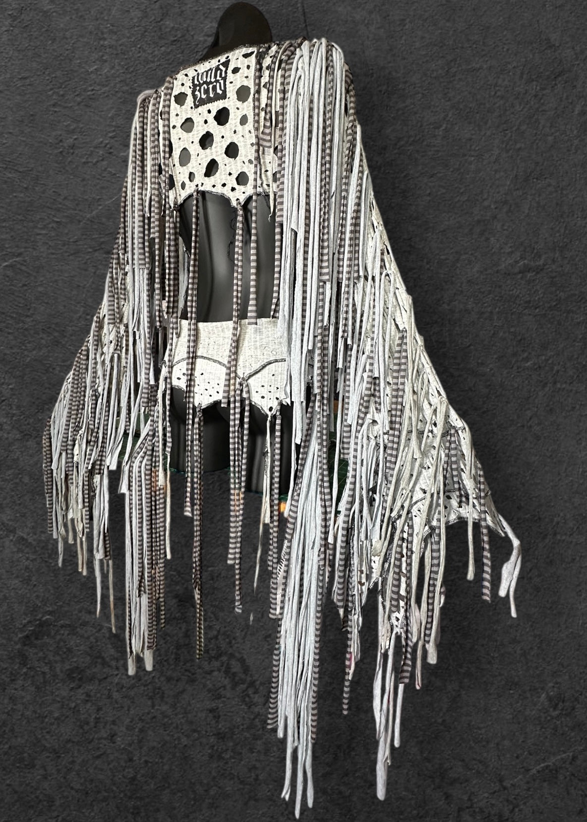 Distressed, deconstructed & reworked. Edges left raw for a punk couture vibe.
